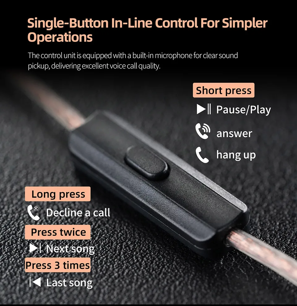 The interchangeable cable design allows you to easily replace different types of cables according to various usage scenarios and needs to enhance sound quality and extend the earphone's lifespan.