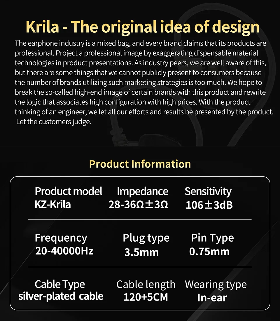 KZ Krila 1DD+1BA High-end Tunable Balanced Armature In Ear HiFi Earphone Monitor Headphone Cancelling Earbuds