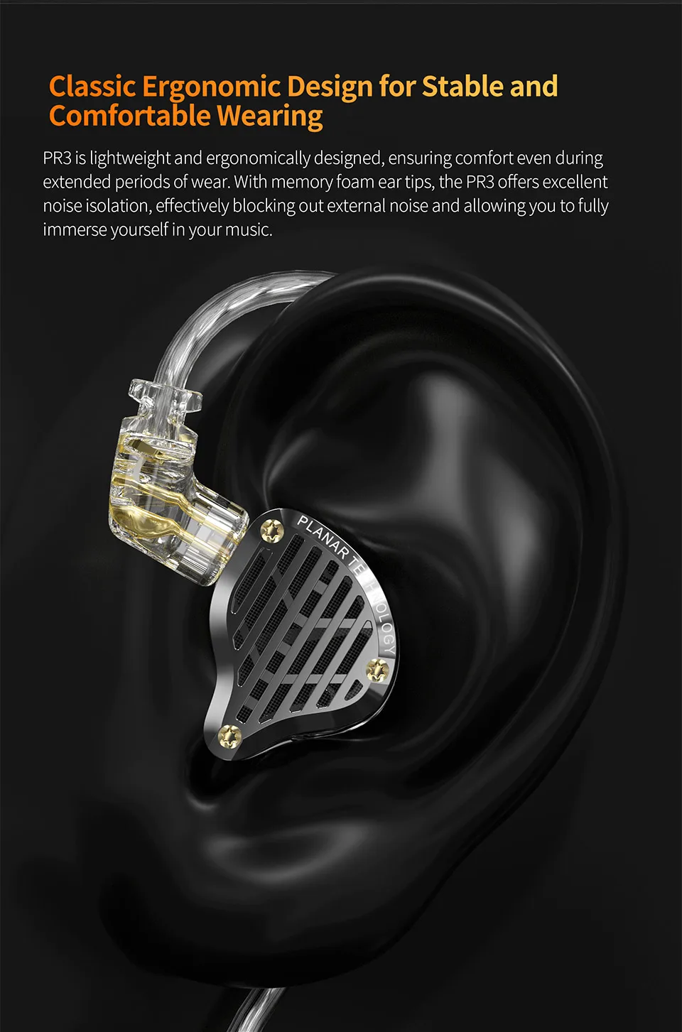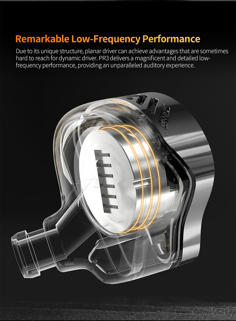 Benefiting from its unique planar driver structure, KZ PR3 achieves a detailed and magnificent low-frequency performance, providing an unparalleled auditory experience.