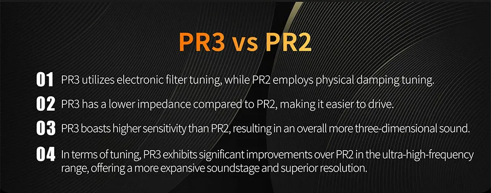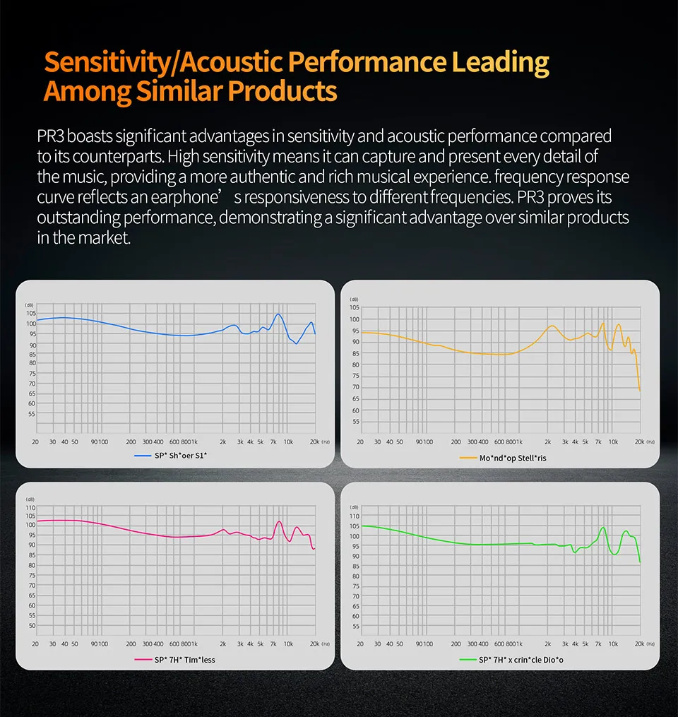 PR3 excels in delivering clear and distortion-free low-frequency performance, showcasing a balanced mid-frequency range with clear vocals and instrumentals. Its sensitivity and acoustic performance surpass competitors, providing an authentic and rich musical experience.