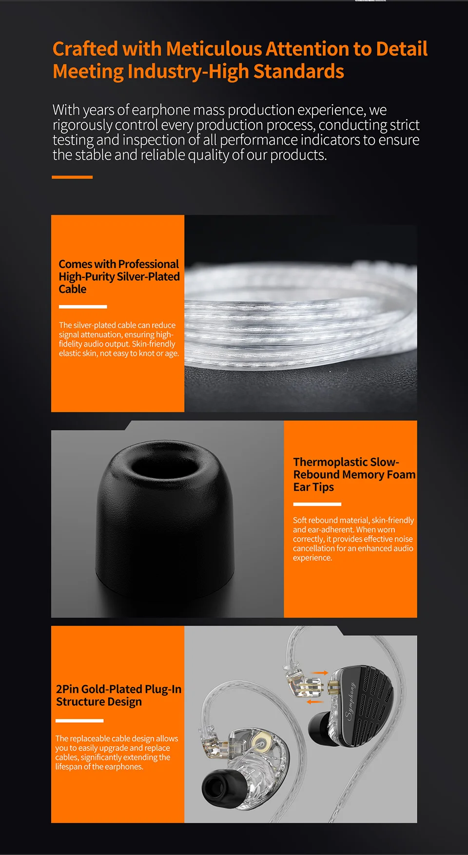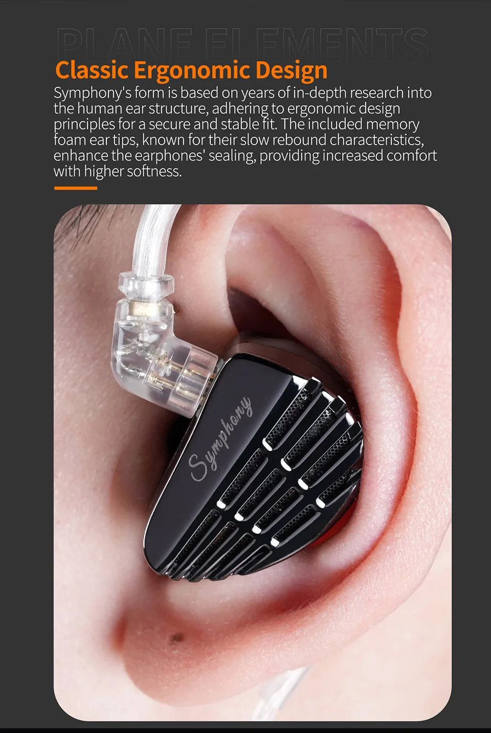 Drawing on extensive anatomical research, the KZ Symphony's ergonomic design ensures a secure and comfortable fit. The use of memory foam ear tips enhances sealing and comfort, offering a snug fit that improves audio quality and isolates external noise.