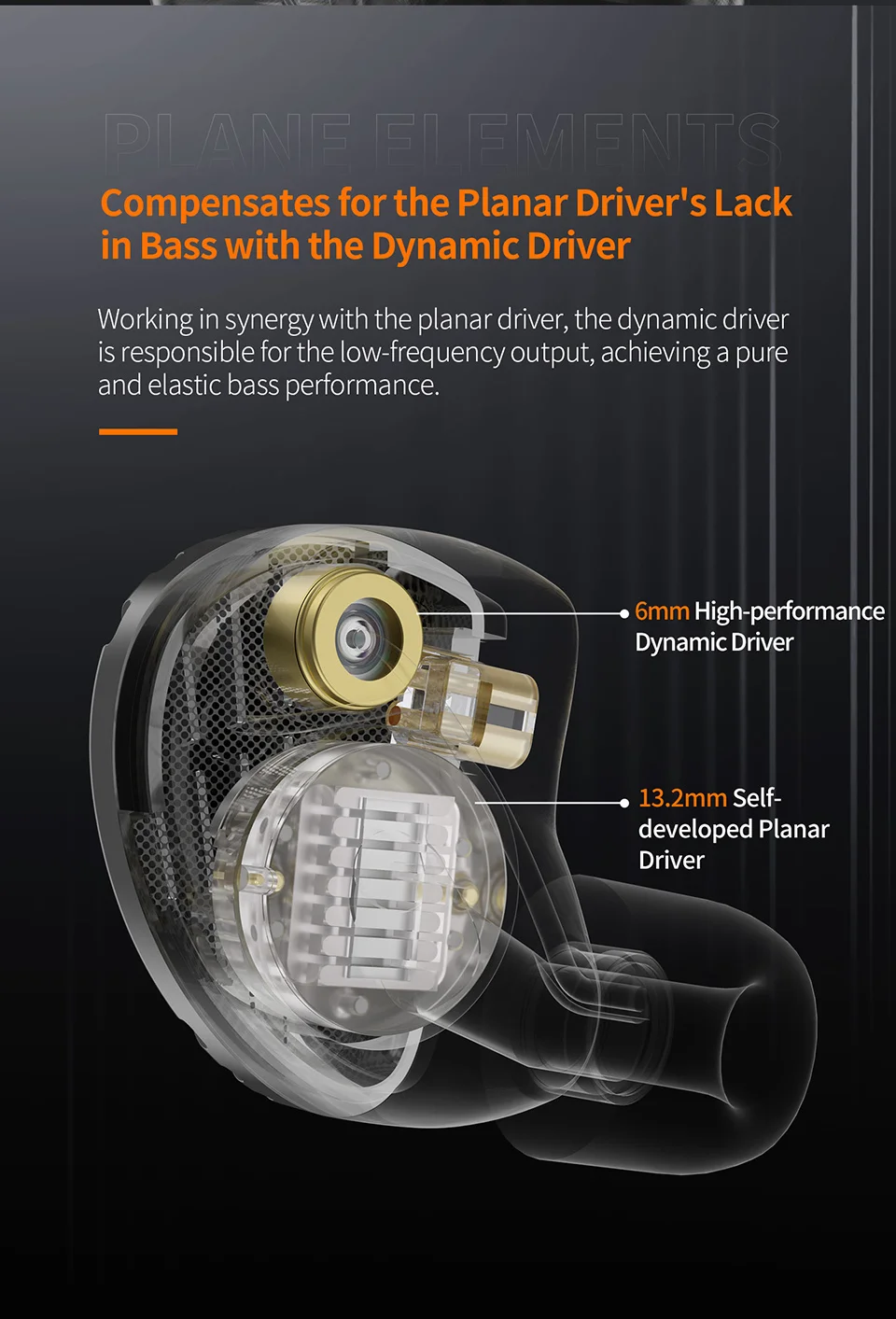 The inclusion of a 6mm high-performance dynamic driver addresses the typical bass shortfall of planar drivers, enriching the KZ Symphony's bass response. This driver synergy creates a balanced, full-bodied sound profile across all frequencies for a deeply immersive listening experience.