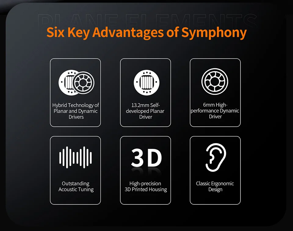 The KZ Symphony distinguishes itself with a 13.2mm planar driver, delivering an expansive soundstage unmatched by traditional dynamic drivers. This technological advancement ensures high-frequency and ultra-high-frequency sounds are rendered with unparalleled clarity, offering listeners vivid audio details.
