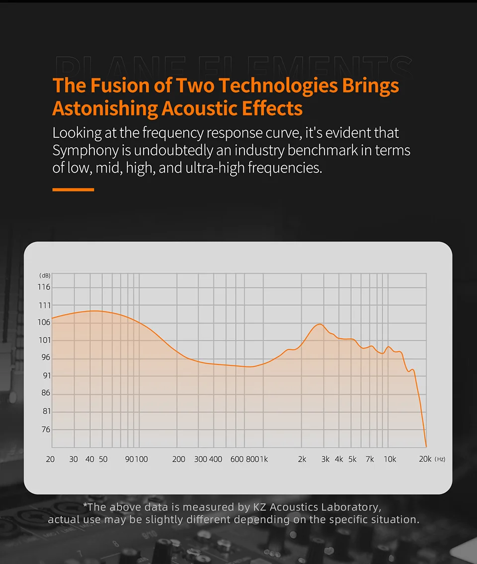 KZ Symphony's innovative blend of planar and dynamic drivers sets a new industry benchmark. This dual-driver fusion results in extraordinary acoustic effects, with a frequency response curve that excels across low, mid, high, and ultra-high frequencies, establishing the KZ Symphony as a paragon of balanced and detailed audio reproduction.