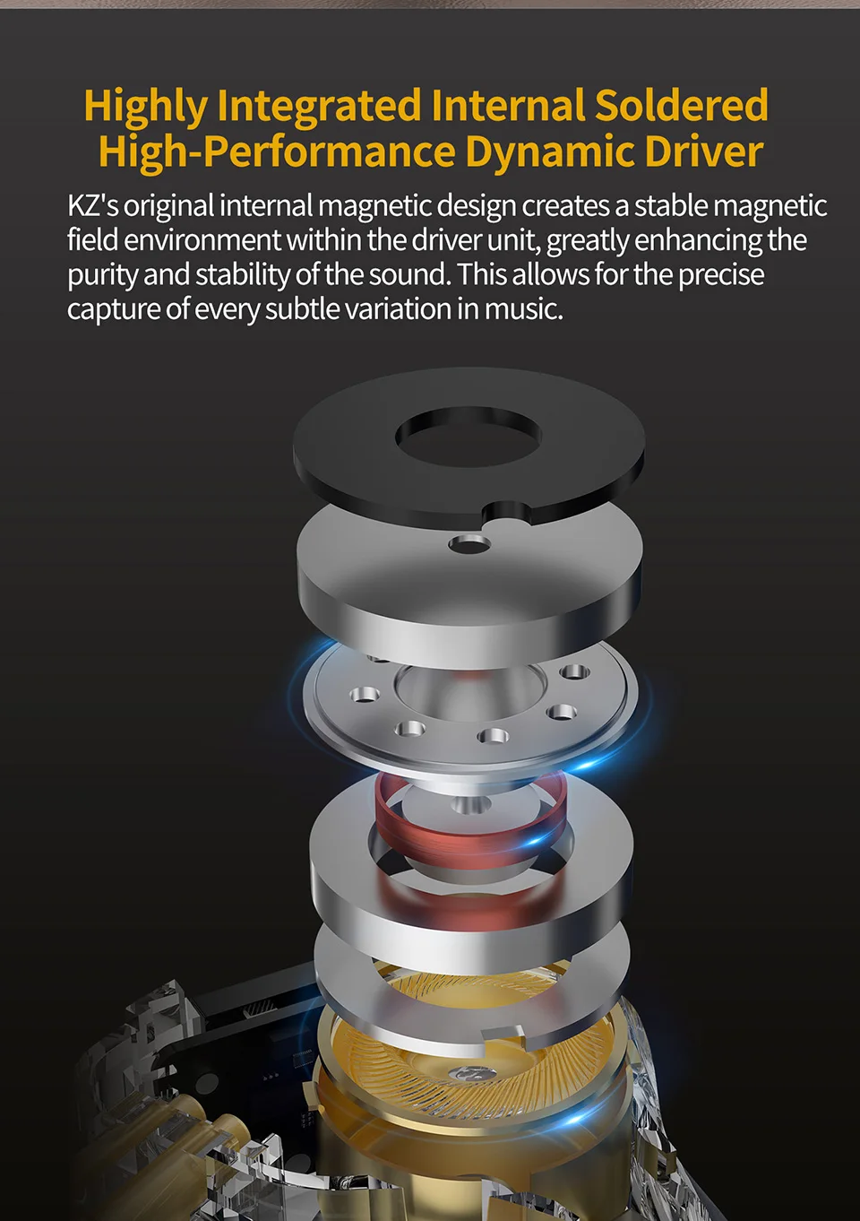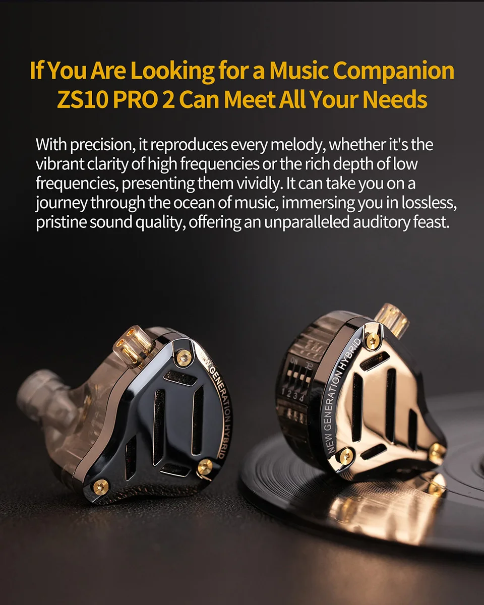 The ZS10 Pro 2, leveraging KZ's innovative electronic crossover technology, precisely manages the interplay between its balanced armature and dynamic drivers. This advanced approach ensures each driver performs optimally within its assigned frequency range, revealing music details with unprecedented clarity. Featuring hybrid driver technology, the ZS10 Pro 2 offers a robust soundstage and extensive dynamic range, capturing and faithfully reproducing every nuance—from the subtlest emotional undertones to the most exhilarating climaxes—without compromise.