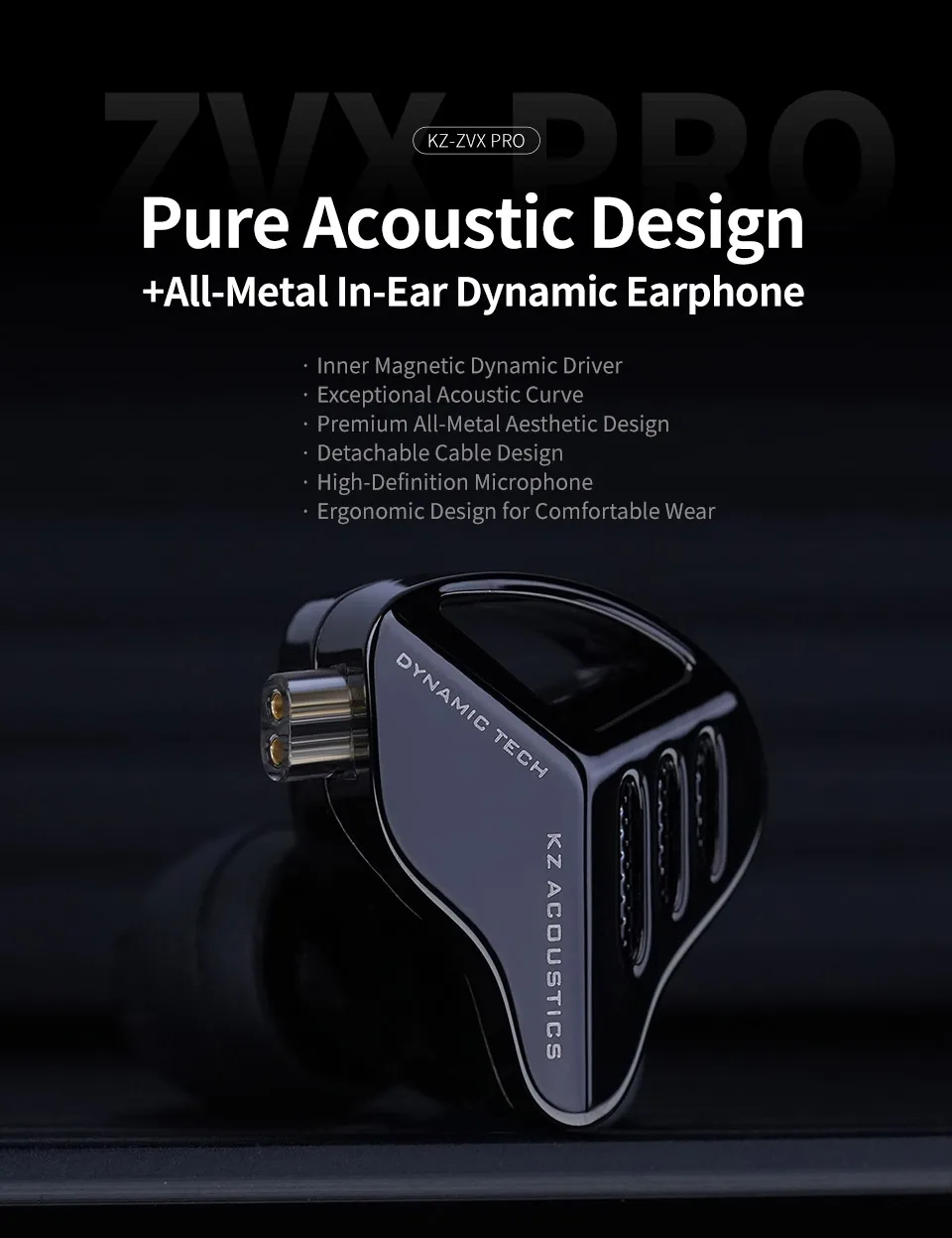 Pre-order KZ ZVX Pro Pure Acoustic Design All-Metal IEM Hifi Earphone with High-Purity OFC Flat Cable for Superior Sound
