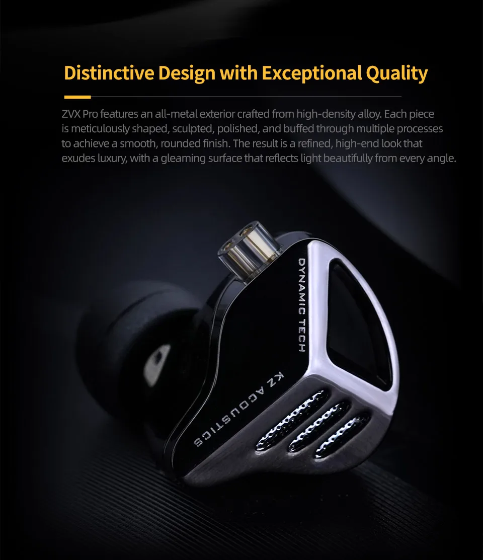 The KZ ZVX Pro redefines audio performance with HiFi-grade sound quality, setting a new standard in its class. Delivering an extraordinary auditory experience, it offers a precise and immersive sound that transcends traditional boundaries.