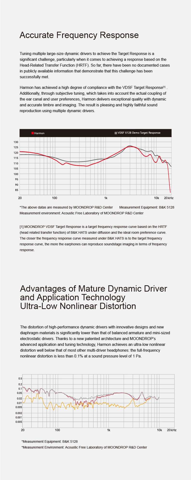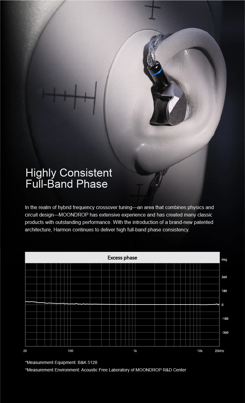 Backed by advanced FEA acoustic modeling and a team of senior engineers, the Harmon delivers accurate frequency response and impressive phase consistency. The tuning closely follows MOONDROP’s VDSF Target Response, enhanced further by subjective fine-tuning for a natural, engaging sound with excellent imaging.