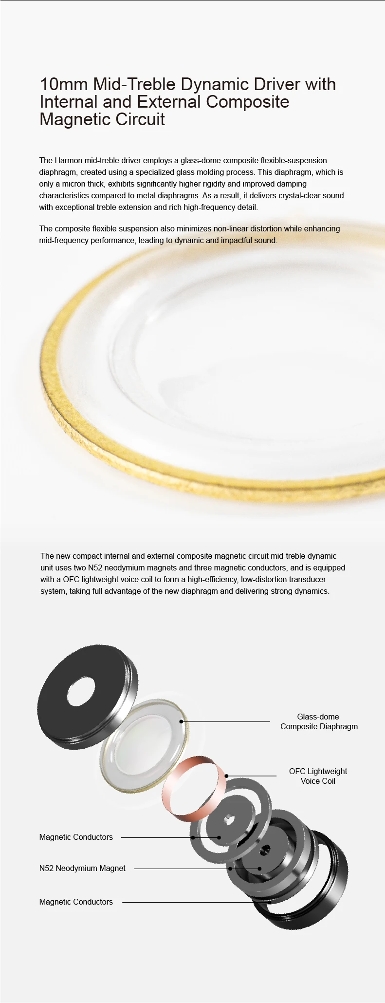 Unlike conventional IEMs, the Harmon integrates three 10mm dynamic drivers within a tiny shell. Each driver is paired with an independent acoustic cavity, enabling detailed crossover control and exceptional tuning accuracy. This innovative architecture allows Harmon to deliver big, full-bodied sound from a surprisingly small enclosure.