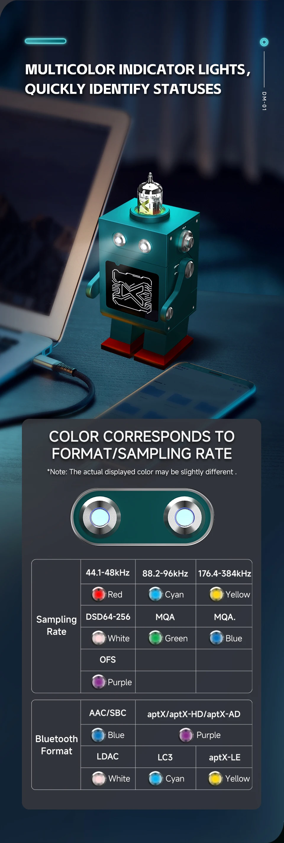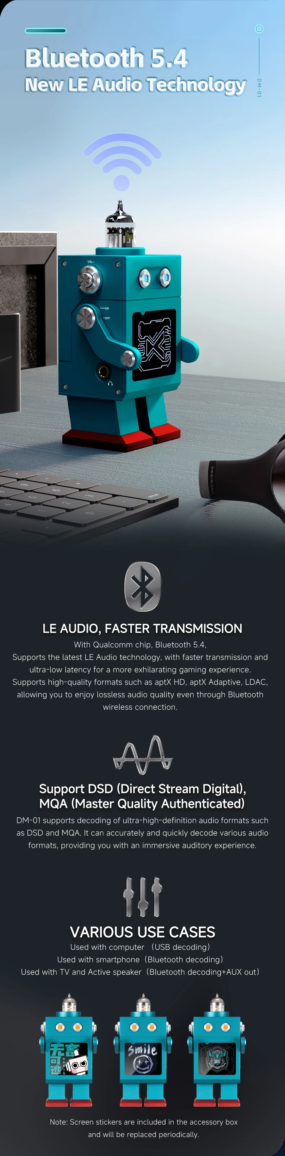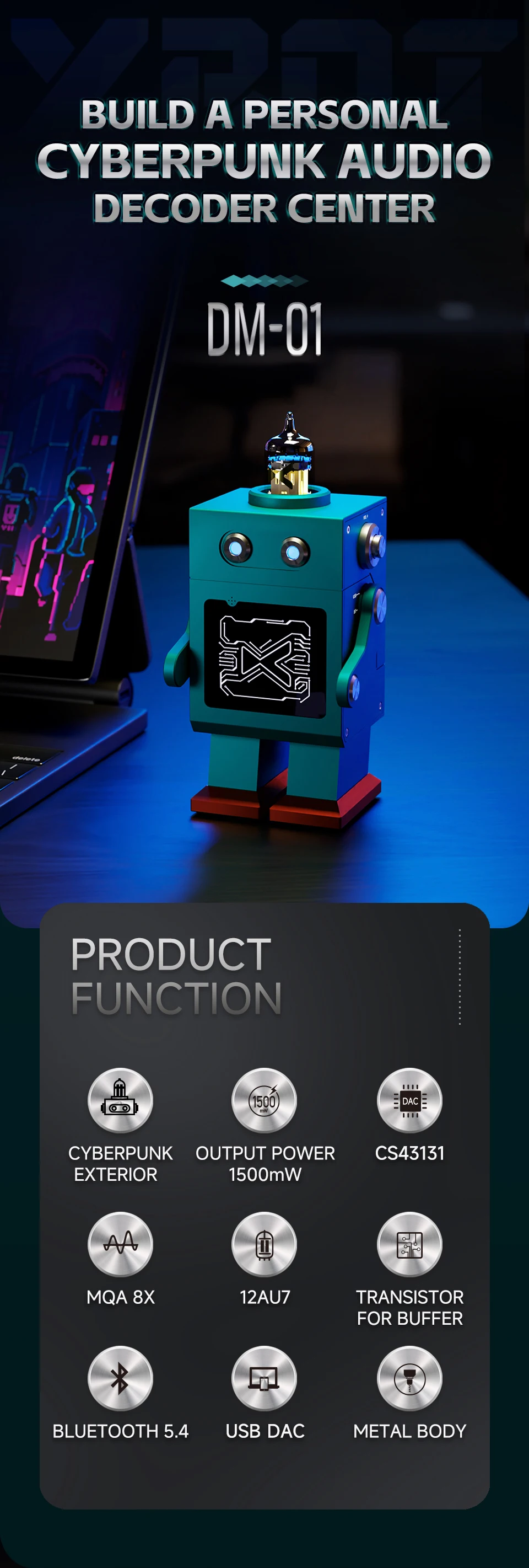 XDUOO DM-01 Robot-Shaped DAC & Headphone Amplifier Bluetooth 5.4 USB DAC DSD CS43131 MQA Vacuum tube Amplifier