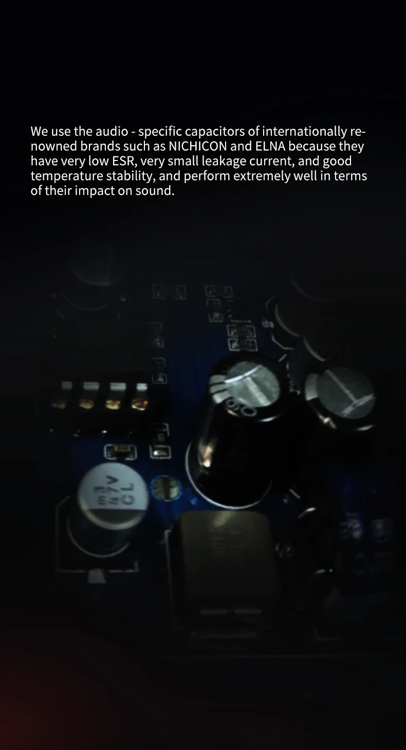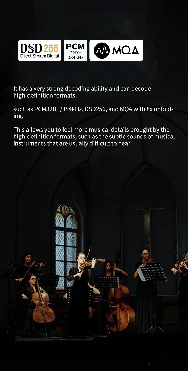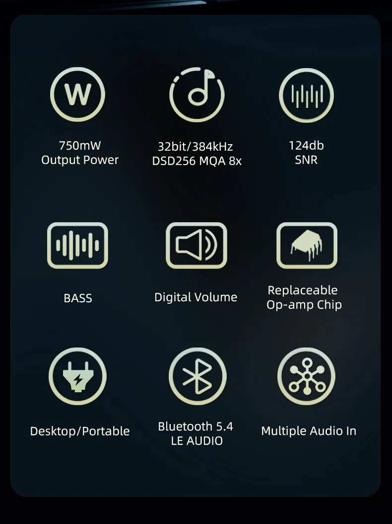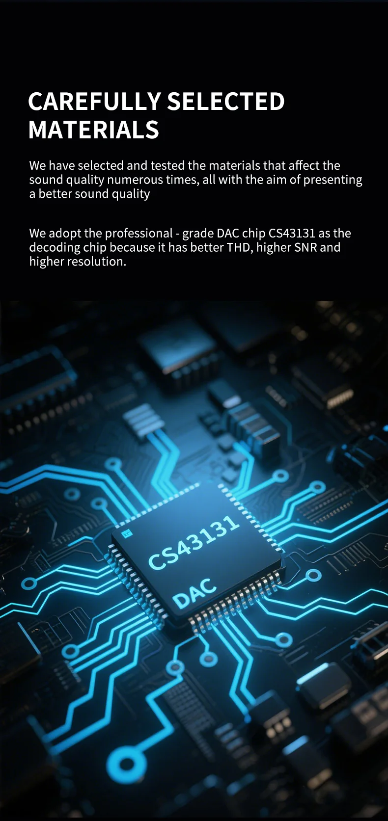 Every component that affects sound quality has been selected and tested rigorously. The unit employs a professional-grade CS43131 DAC chip, chosen for its low THD, high SNR, and exceptional resolution, ensuring the best possible audio performance.