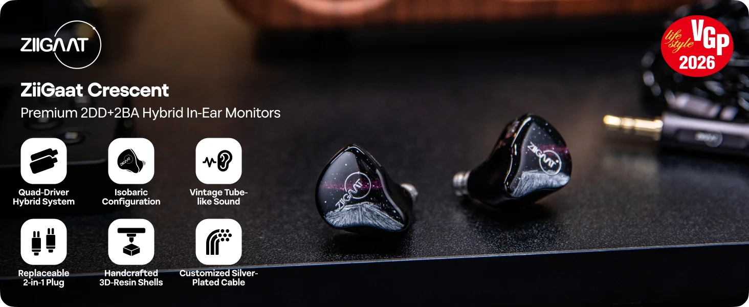ZiiGaat Crescent Premium 2DD+2BA Hybrid Handcrafted Quality IEM Hifi Earphone with Interchangeable 2-pin 0.78mm Connector Cable