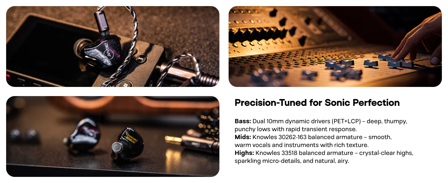 Driver: 2DD+ 2BA,10mm PET + 10mm LCP + Knowles 30262-163 + Knowles 33518