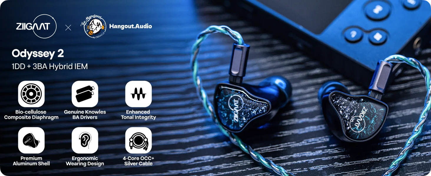 ZiiGaat x Hangout.Audio: Odyssey 2 1DD + 3BA Hybrid IEM Earphone with Genuine Knowles Balanced Armature Drivers